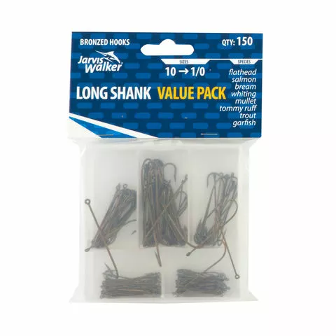 | Long Shank Hooks Assorted Sizes | 10 to 1/0 | 150pce | ||||